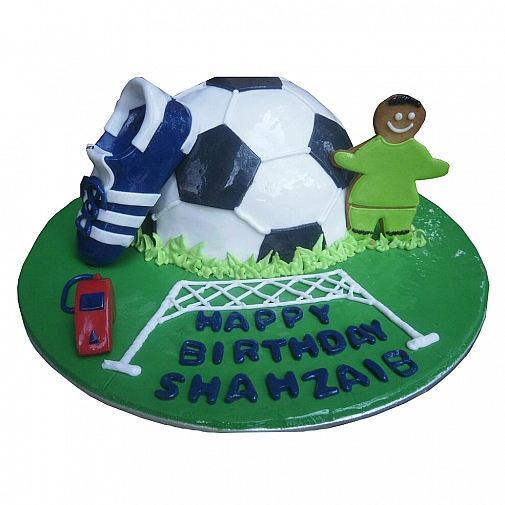 Is your specail one is a big football fan? Does he wants to be the next Ronaldo? Then this cake is a perfect surprise to present him on his special day. We are sure that you will score very high when you give it to him as his excitement and happiness will touch the sky. For sending this mouthwatering cake to Pakistan you can order online or make a call to our 24/7 customer service centre. We offer free home delivery and a complementary message card. Flavors Available: Chocolate Fudge, Plain Cake Weight: 3Ibs Serves: 12 - 14 people