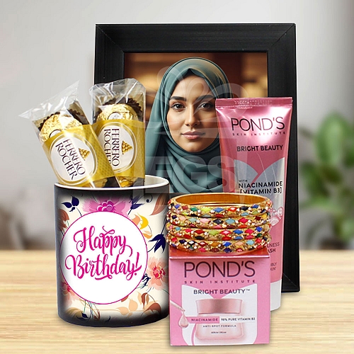 6-pcs of Ferrero Rocher Chocolate Personalised Magic Mug Photo Frame Ponds Bright Beauty Day Cream (Vitamin B3) 50g 4 - Multi Color Metal Bangles Ponds Bright Beauty Face Wash 100g Gift Bag