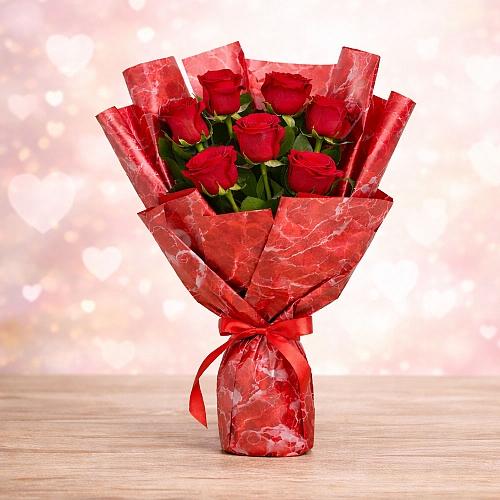 Ignite the flames of passion with our Valentine Flame Flowers Bouquet, a stunning arrangement of vibrant red roses wrapped in luxurious red paper. This bouquet is the ultimate symbol of love and romance, perfect for making a heartfelt statement on Valentine’s Day. Each stem of rose speaks of deep affection, while the bold red wrap enhances the bouquet’s timeless elegance. Whether you're celebrating a long-lasting relationship or expressing newfound love, this bouquet is sure to leave a lasting impression. Give the gift of passion and romance this Valentine’s Day with the Valentine Flame Flowers Bouquet.